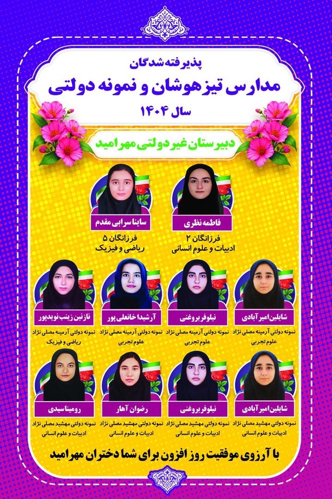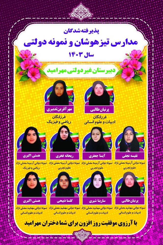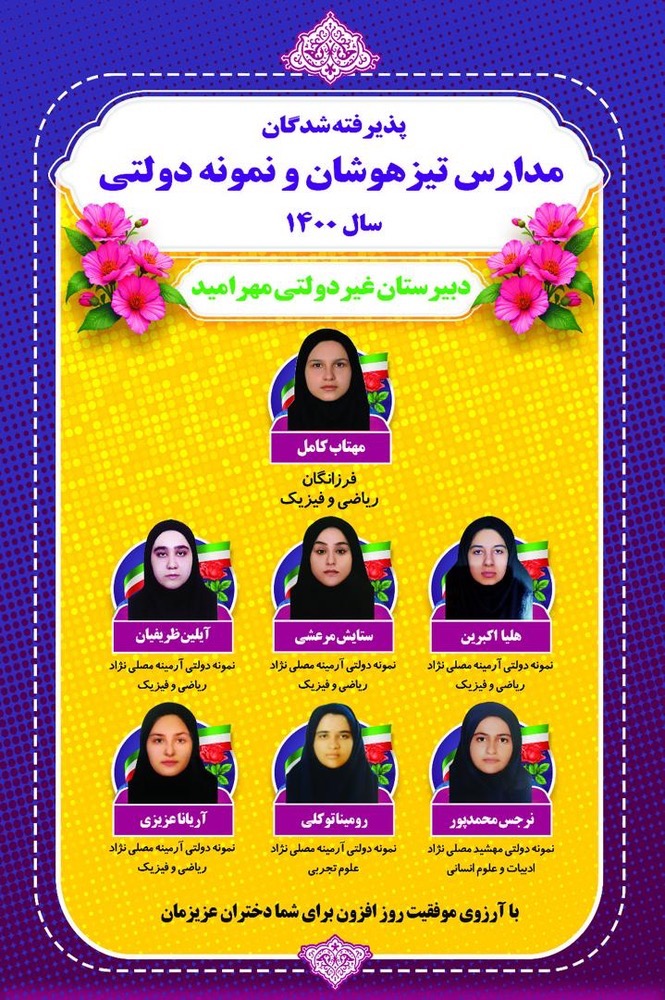 غیردولتی دخترانه مهرامید (متوسطه اول ) با کادری مجرب و سابقه ای درخشان