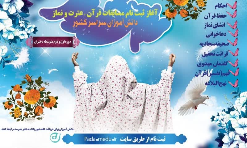 ثبت نام مسابقات قرآن ، عترت و نماز دانش آموزان سراسر کشور دوره اول و دوم متوسطه دختران
